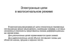 Электронные цепи в малосигнальном режиме В малосигнальном режиме
