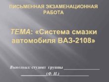 ПИСЬМЕННАЯ ЭКЗАМЕНАЦИОННАЯ РАБОТА ТЕМА Система смазки автомобиля ВАЗ-2108
