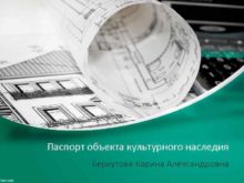 Паспорт объекта культурного наследия Беркутова Карина Александровна