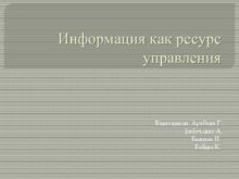 Информация как ресурс управления Выполнили Арабова Г Бабоченко
