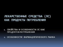 ЛЕКАРСТВЕННЫЕ СРЕДСТВА ЛС КАК ПРОДУКТЫ ПОТРЕБЛЕНИЯ 1 СВОЙСТВА