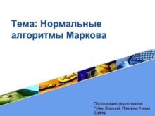 Тема Нормальные алгоритмы Маркова LOGO Презентацию подготовили Губин