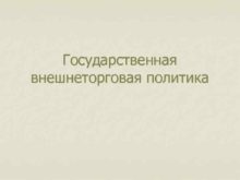 Государственная внешнеторговая политика Торговая политика — это
