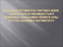БАЛАНЫҢ КҮТІМІН КҮН ТӘРТІБІН ЖӘНЕ ТАМАҚТАНУЫН ҰЙЫМДАСТЫРУ БОЙЫНША