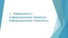 1 Информация и информационные процессы Информационные технологии