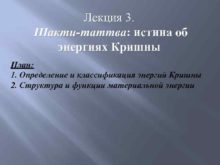 Лекция 3 Шакти-таттва истина об энергиях Кришны План