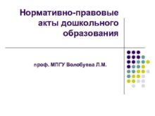 Нормативно-правовые акты дошкольного образования проф МПГУ Волобуева Л