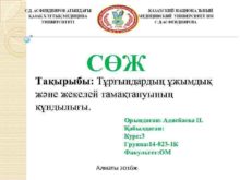 СӨЖ Тақырыбы Тұрғындардың ұжымдық және жекелей тамақтануының құндылығы
