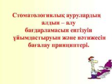 Стоматологиялық аурулардың алдын алу бағдарламасын енгізуін ұйымдастыруын