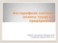Бестарифная система оплаты труда на предприятии Работу выполнила