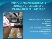 МИКРОБНАЯ ЗАГРЯЗНЕННОСТЬ ВОЗДУХА В ПОМЕЩЕНИЯХ МЕДИЦИНСКОГО КОЛЛЕДЖА Орехово-Зуевский