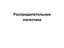 Распределительная логистика Распределительная логистика является заключительной фазой