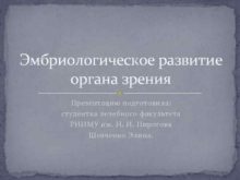 Эмбриологическое развитие органа зрения Презентацию подготовила студентка лечебного