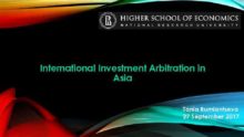 International Investment Arbitration in Asia Tania Rumiantseva 27