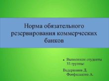 Норма обязательного резервирования коммерческих банков Выполнили студенты 33