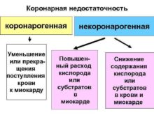 Коронарная недостаточность коронарогенная Уменьшение или прекращения поступления крови