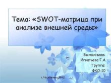 Тема SWOT-матрица при анализе внешней среды Выполнила Игнатьева