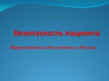 Безопасность пациента Нормативные документы в России Безопасность