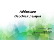 Аддикции Вводная лекция Автономов Денис Клинический медицинский психолог