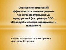 Оценка экономической эффективности инвестиционных проектов промышленных предприятий на