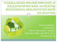 СОЦИАЛЬНО-ФИЛОСОФСКИЕ И ПЕДАГОГИЧЕСКИЕ АСПЕКТЫ ФЕНОМЕНА ЭКОЛОГИЧЕСКОЙ КУЛЬТУРЫ подготовила