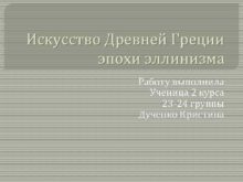 Искусство Древней Греции эпохи эллинизма Работу выполнила Ученица