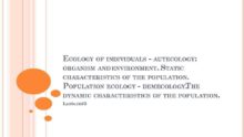 ECOLOGY OF INDIVIDUALS — AUTECOLOGY ORGANISM AND ENVIRONMENT