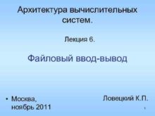 Архитектура вычислительных систем Лекция 6 Файловый ввод-вывод