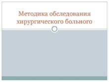 Методика обследования хирургического больного Цель обследования Обследование