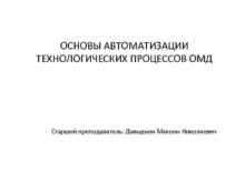 ОСНОВЫ АВТОМАТИЗАЦИИ ТЕХНОЛОГИЧЕСКИХ ПРОЦЕССОВ ОМД Старший преподаватель Давыдкин