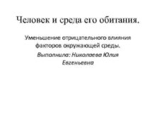 Человек и среда его обитания Уменьшение отрицательного влияния