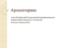 Археоптерикс Санкт-Петербургский Государственный Аграрный университет Кафедра Водные биоресурсы