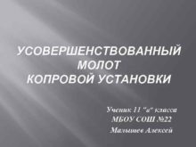 УСОВЕРШЕНСТВОВАННЫЙ МОЛОТ КОПРОВОЙ УСТАНОВКИ Ученик 11 а класса