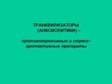 ТРАНКВИЛИЗАТОРЫ АНКСИОЛИТИКИ противотревожные и стресспротективные препараты