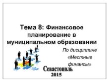 Тема 8 Финансовое планирование в муниципальном образовании По