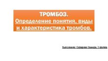 ТРОМБОЗ Определение понятия виды и характеристика тромбов Выполнила