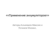 Применение аккумуляторов Авторы Альмяшев Максим и Почкаев Михаил
