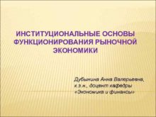 ИНСТИТУЦИОНАЛЬНЫЕ ОСНОВЫ ФУНКЦИОНИРОВАНИЯ РЫНОЧНОЙ ЭКОНОМИКИ Дубынина Анна Валерьевна