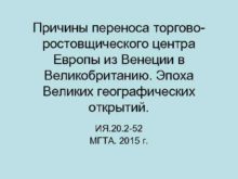 Причины переноса торговоростовщического центра Европы из Венеции в