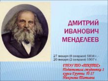 ДМИТРИЙ ИВАНОВИЧ МЕНДЕЛЕЕВ 27 января 8 февраля 1834