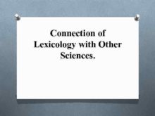Connection of Lexicology with Other Sciences Lexicology