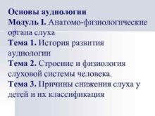 Основы аудиологии Модуль I Анатомо-физиологические органа слуха Тема