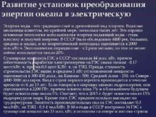 Развитие установок преобразования энергии океана в электрическую Энергия