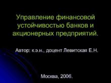 Управление финансовой устойчивостью банков и акционерных предприятий Автор