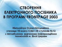 СТВОРЕННЯ ЕЛЕКТРОННОГО ПОСІБНИКА В ПРОГРАМІ FRONTPAGE 2003 Ніколайчук