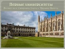 Первые университеты Выполнили Смирнова Алена и Прусова Полина