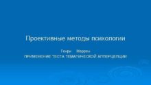 Проективные методы психологии Генри Мерреи ПРИМЕНЕНИЕ ТЕСТА ТЕМАТИЧЕСКОЙ