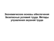 Экономические основы обеспечения безопасных условий труда Методы управления
