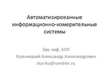 Автоматизированные информационно-измерительные системы Зав каф АПП Кульчицкий Александрович