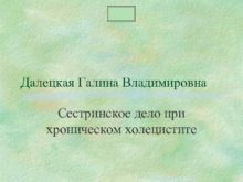 Далецкая Галина Владимировна Сестринское дело при хроническом холецистите